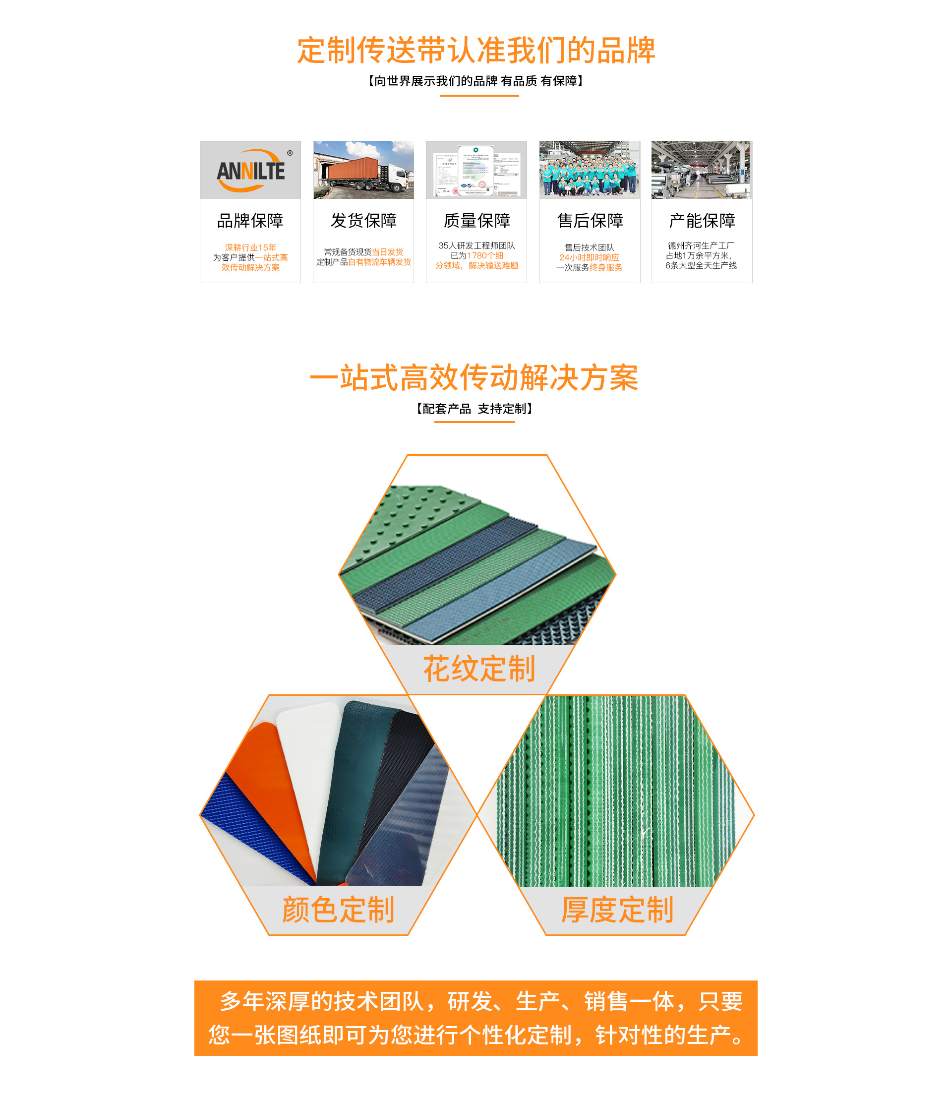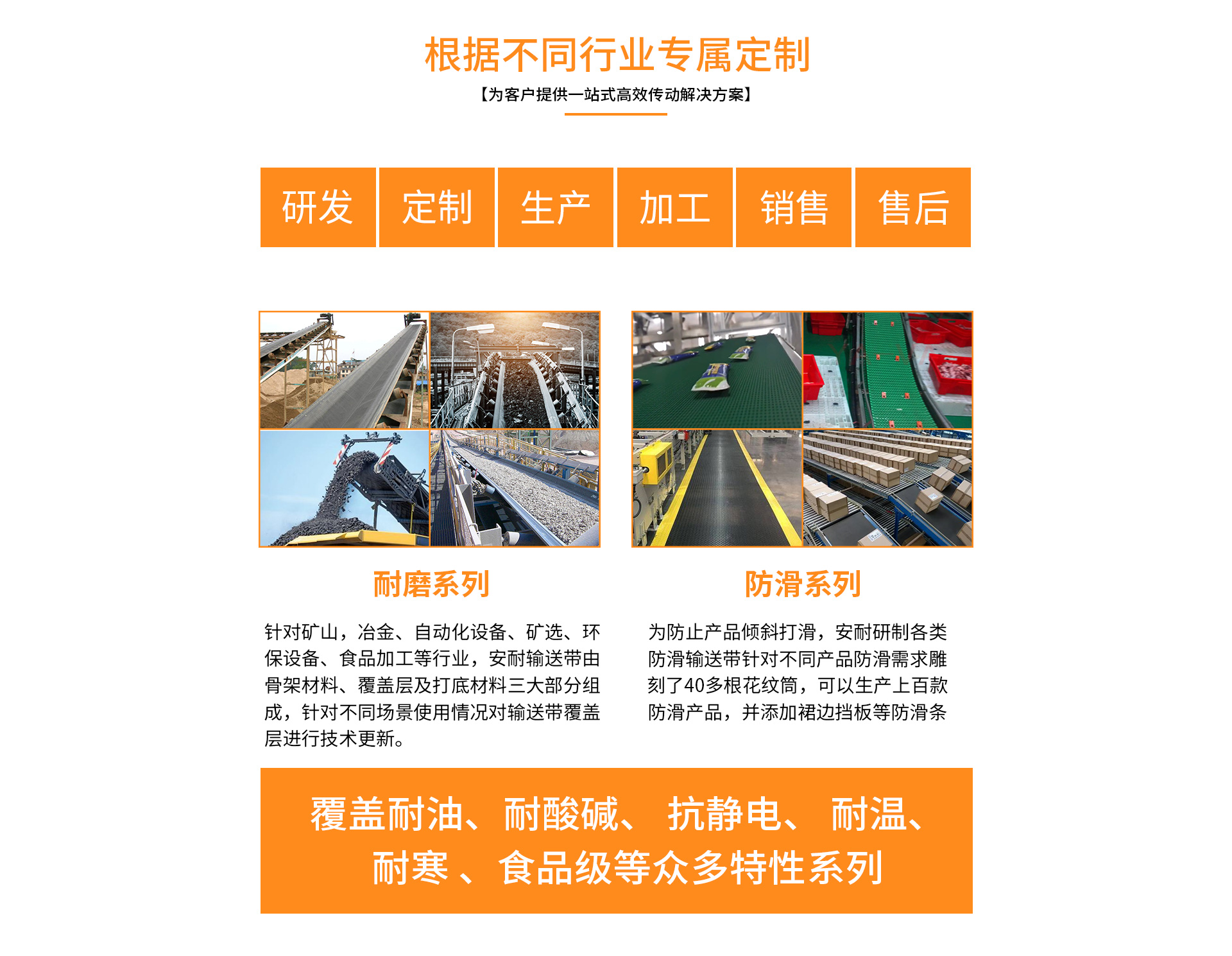 濟南安耐特種工業皮帶有限公司主要產品有傳送帶、輸送帶、同步帶、同步帶輪、片基帶以及各種特殊規格工業皮帶,產品廣泛應用于食品、包裝、電子、建材、物流及農產品等領域。 公司通過為客戶提供一站式高效傳動解決方案,給傳統產品賦予了智能時代自動化的靈魂。 公司目前重點產品有:水餃機皮帶、淘金磁選帶、精準傳動與輸送復合帶、垃圾環保分選帶、玉米自動收割機專用帶、菌菇育種帶等特色產品,通過技術和加工工藝的提高與改進,滿足了新興行業的個性化需求,也賦予傳統產品新的生命和生機。