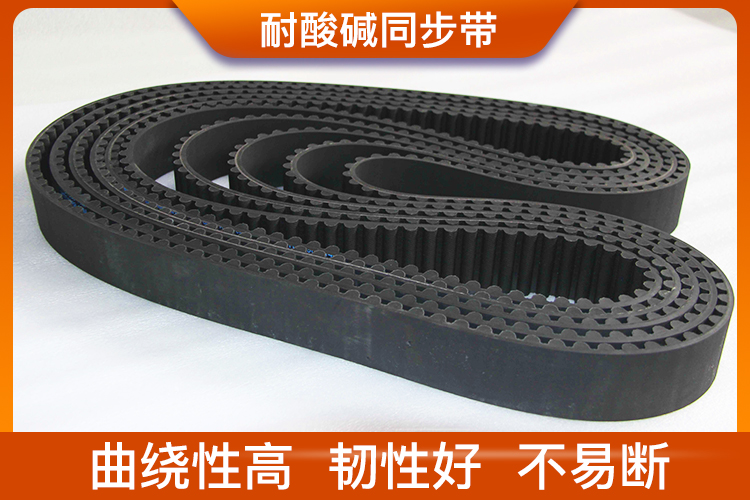 耐酸堿同步帶:是濟南安耐針對蝕刻機同步帶酸堿性工作環境下研發同步帶,適用于電鍍行業、蝕刻機設備等酸堿性傳動行業,有效解決同步帶齒容易掉,皮帶容易斷的問題。