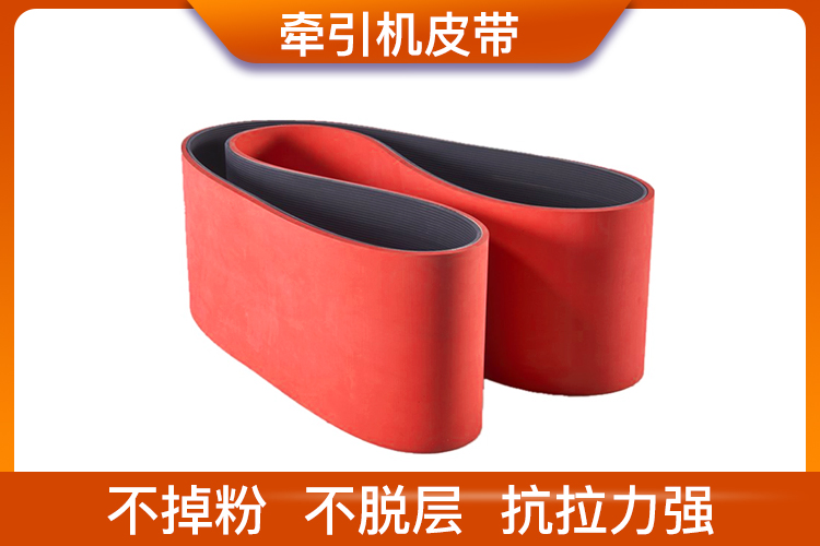 牽引機皮帶:牽引機皮帶也稱擠出機皮帶,廣泛應用于管材電線電纜的牽引擠出。牽引機皮帶采用的是多楔底帶,表面橡膠層主要采用氯丁橡膠材質,傳統的工藝是先做好底帶,再用膠水高溫粘合上橡膠層;而濟南安耐高品質牽引機皮帶采用的是模具一體硫化成型工藝生產的,無縫無接口,具有耐磨不打滑、不掉粉、不會縱向斷裂、不脫層等優點,壽命更長!