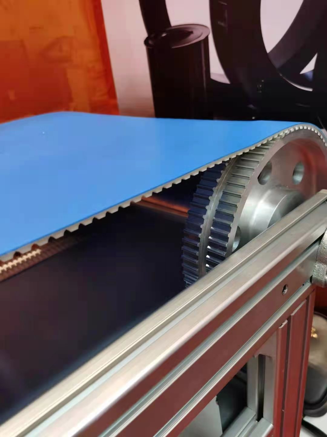 6、可根據您的需求定制,在同步輸送帶上進行添加無縫擋板裙邊導條,可選擇底帶的同步帶齒距、皮帶的寬度、厚度等。