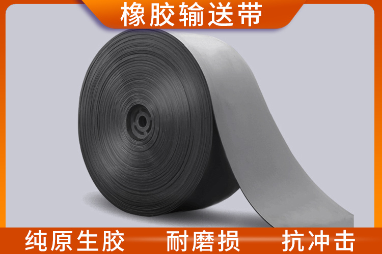 橡膠輸送帶主要由上下覆蓋膠和骨架材料組成,具有優良的抗拉強度、撕裂強度和耐磨損性能,適用于輸送各種散裝、塊狀、粉狀物料。